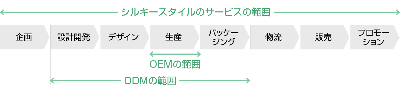 美容業界・通販業界の方はもちろん、新規参入を検討している方もご安心下さい。シルキースタイルのOEM・ODMサービスは、市場を踏まえつつ、お客様がご希望とされる商品の種類、特徴、販路などに考慮した、商品プランをご提示させていただきます。また、企画・設計開発・デザイン・生産・パッケージング・物流・販売・プロモーションまで、数々のヒット商品を生み出し続けたシルキースタイルならではの豊富な経験と実績でお客様をサポートいたします。まだイメージが曖昧な場合でも、豊富な経験より具体的にご提案させていただきますので、まずはお問い合わせください。